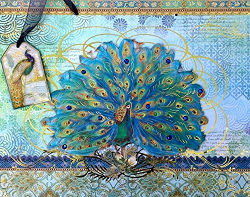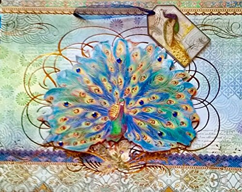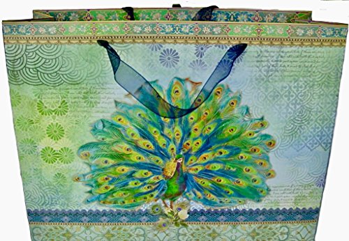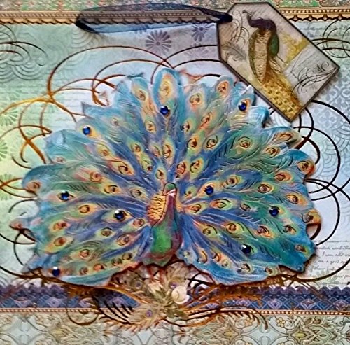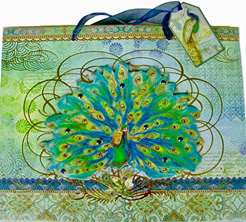 Punch Studio Large 3D Die-Cut Embellished Gift Bag w/Gift Tag - Ivory Turquoise Peacock 62468