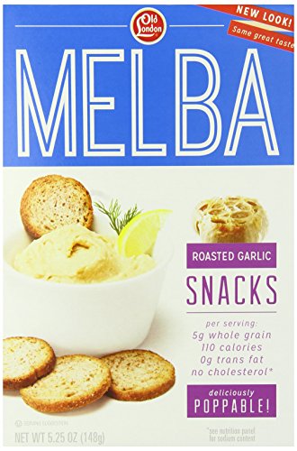 -. Feature : Case of 12 5.25-ounce boxes of garlic flavor melba snacks (63 total ounces) / Made with certified Kosher ingredients, including natural garlic flavor / Light and crisp; top with veggies, fruit or cheese / Low in fat; only 60 calories per serving; 100% cholesterol free / Great for healthy entertaining