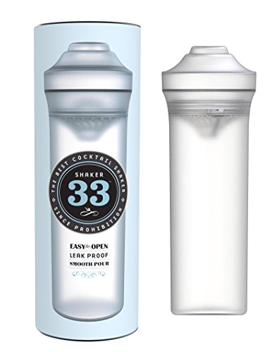 -. Feature : REVOLUTIONARY NEW COCKTAIL SHAKER: Shaker33 is the Easiest Way to Create your Favorite Drinks. This Lightweight, Shatterproof Shaker Holds 24 Ounces of Liquid and can be Shaken with One Hand. It is Leakproof, Easy to Open, and Contains a Locking Top and Dual Strainer. Mix Perfect Margaritas, Martinis, Mojitos, and Other Beverages With and Without Alcohol. Perfect Alternative to Heavy Mason Jar Shaker or Cold and Leaky Stainless Steel Shakers. / CHILL YOUR DRINK, NOT YOUR HANDS: Shaker33 is Made from Tritan and Designed so that Your Drink is Efficiently Chilled, but your Hands are Not. The Lid Locks in Place and the Shaker is 50% Lighter than a Traditional Shaker, so You can Shake with One Hand and Not Worry about Leaks or Spills. Safely Shake Cocktails with Flair! / TWO OPTIONS FOR STRAINING: The Patented Straining Design Offers Two Sides for Straining - Smaller Holes for a Finer Strain, and Larger Holes for a Faster Pour. Ice Won't Block the Liquid Flow with this Strainer. It Locks into the Shaker, and Can be Inserted Into the Lid when it is Placed Upside Down on a Table or Bar. / THE PERFECT GIFT: Shaker33 Includes Beautiful Gift Packaging to make it the Perfect Gift. Great for Bartenders, Your Friend with a Home Bar, Mixology Enthusiasts, and Anyone Who Enjoys Turning Cocktail Recipes into a Great Cocktail. / Shaker33 is BPA-Free, Dishwasher Safe, Shatterproof, and Made in the USA. Money Back Guarantee.