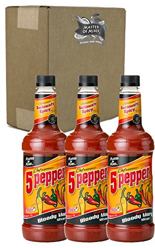 Master of Mixes 5 Pepper Extra Spicy Bloody Mary Drink Mix, Ready to Use, 1 Liter Bottle (33.8 Fl Oz), Pack of 3