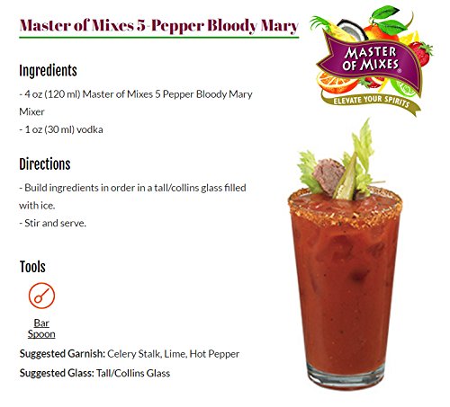 JUST ADD ALCOHOL: Combine 1 1/4 oz. of vodka with 4 oz. of 5 Pepper Extra Spicy Bloody Mary Drink Mix. Stir and garnish with celery stalk, lime and/or cucumber