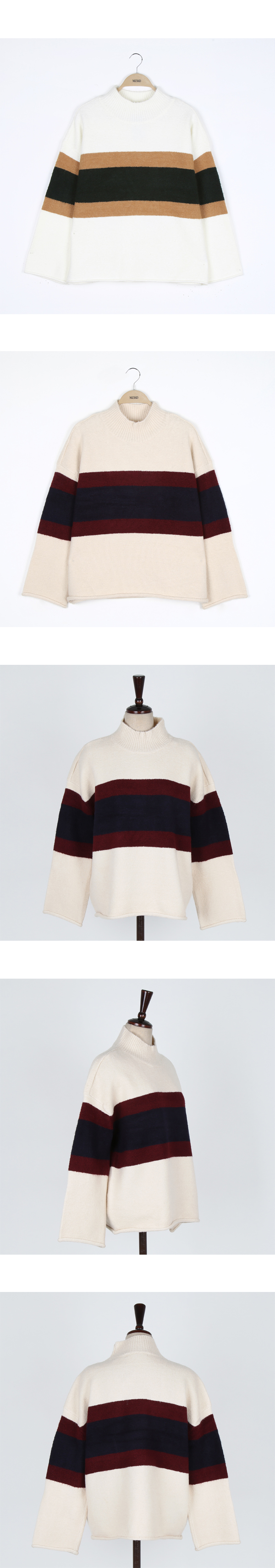 - 배색으로 포인트가 들어간 하프 터틀넥 니트입니다.