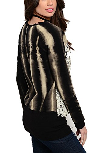 -. Binding : Apparel -. Brand : GINA LOUISE INC -. Department : womens -. Feature : What a fun sweatshirt! Tie dye stripes running vertical. / Wrap yourself in casual charm with this lace front top -. ProductGroup : Apparel -. ProductTypeName : SWEATER -. Title : Gina Louise tie dye streaked sweatshirt with lace font