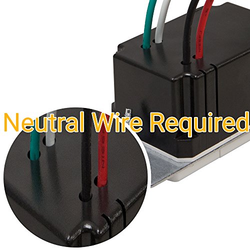- NEUTRAL WIRE REQUIRED, 1,200 square feet coverage, 180 Degree View; 120VAC, 500W Incandescent, Halogen, Fluorescent, LED, CFL, Works with all bulb types. Single Pole Only. Wall plate included