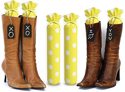 My Boot Trees, Boot Shaper Stands for Closet Organization. Many Patterns to Choose From. 1 Pair (Yellow with White Polka Dots).