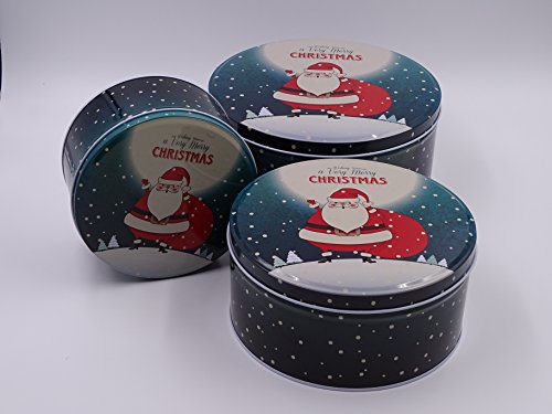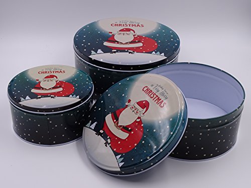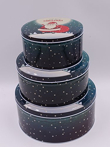 Christmas Themed STARRY NIGHTS Round Storage tins, Shabby chic, set of 3 with Santa Claus on the lid