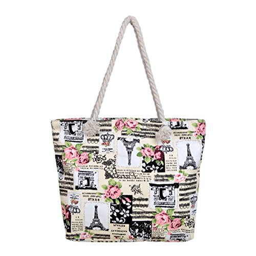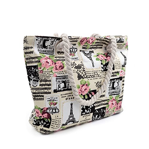 Paris Eiffel Tower Music Notes Floral Print Canvas Tote Shoulder Bag Handbag