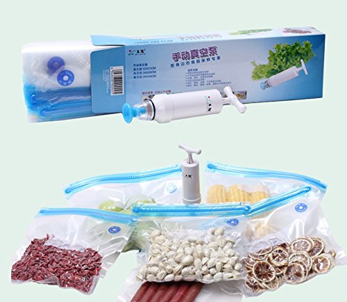 Studio : TOOPONE Publisher : TOOPONE Product Description Advantages of these Bags with Hand Vacuum Pump - Bags are made of PA PE, BPA free - 10 vacuum sealed bags meet your daily demand - Not only for kitchen but also be taken to anywhere, such as outdoor camping, fishing, picnic,etc - Reusable Resealable, each bag has a label for writing down food storing and expiry dates - The bags and pumps can also be used to keep solid and semi-solid food fresh 5 times longer than other traditional storage methods Tips: 1.Package are full inspected before shipping. If there is any absent or damaged parts in your box due to the transportation, please feel free to message us and we will send you a replacement or provide you a refund. 2. BPA free bags are definitely safe and reusable for food storage and your sous vide cooking. For the sake of your health, please remember to clean it up with dish soap and warm water and store it in a clean and dry place after using. Package including: 1x Pump 1x Bag sealing clips 0