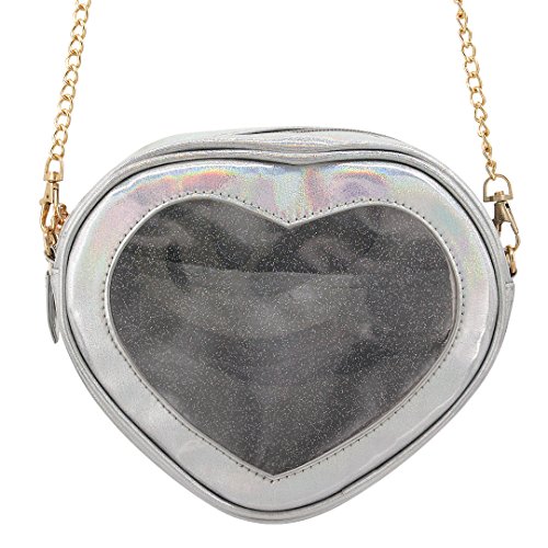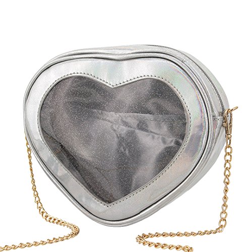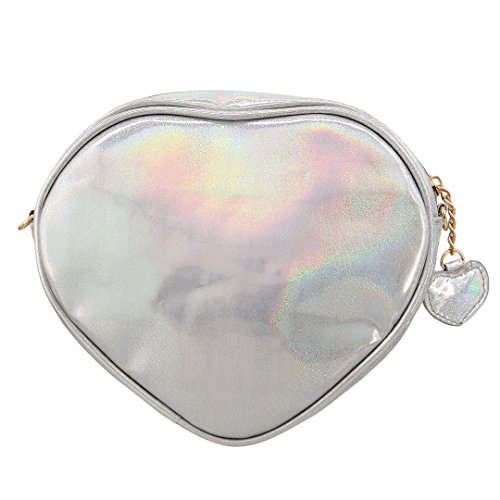 Hermora Hologram PU Leather Heart Shape Clutch Bag Transparent Handbag Crossbody Purse