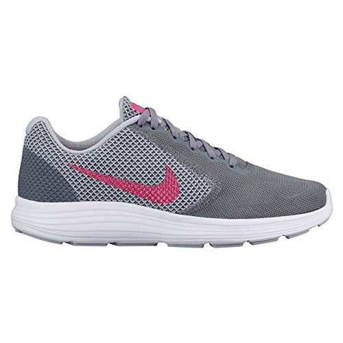 Studio : Nike Publisher : Nike Binding : Misc. Product Description Women's Nike Revolution 3 Running Shoe MINIMAL DESIGN. MAXIMUM COMFORT. Minimal in design, Women's Nike Revolution 3 Running Shoe is made of lightweight, single-layer mesh and minimal no-sew overlays and soft foam beneath the foot for revolutionary comfort. Mesh upper for optimal breathability. Soft foam midsole delivers lightweight, responsive cushioning. Rubber outsole offers excellent traction. Underlays in the vamp and toe tip offer support and structure. Weight: 7.35oz/209g (women's size 8) Offset: 10mm Last: MR-10 Textile (100% Polyester) Synthetic Plastic 0