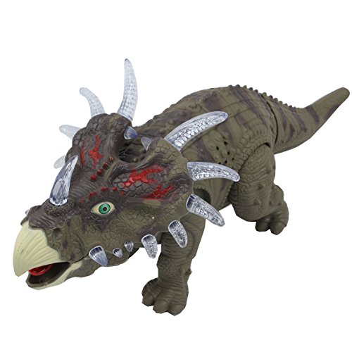 Sun Cling Electronic Toys Walking Triceratops Dinosaur Spinosaurus Walking Dinosaur makes awesome dinosaur noises ! Fun for all ages, requiring 3 AA batteries(not included), kids will be enthused to receive this as a gift for any occasion!