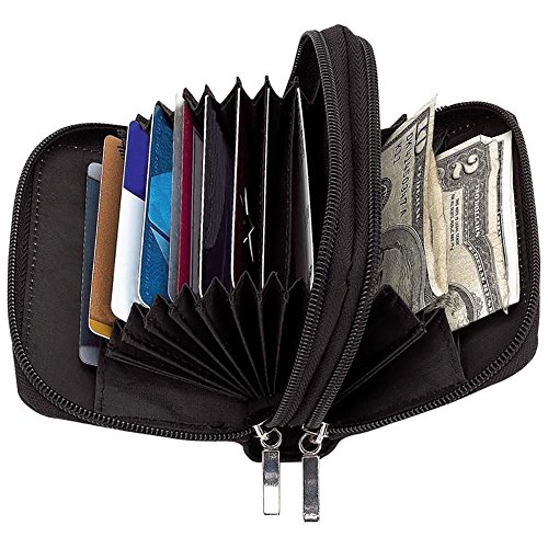Product DescriptionWallet Accordian Zip Around Black Genuine Leather ID Credit Card Case Holder0