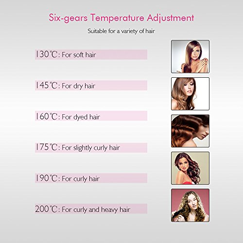Features:6 Modes Adjustable Temperature 130℃-200℃, 6 optional modes, suitable for different hair types and lengths.