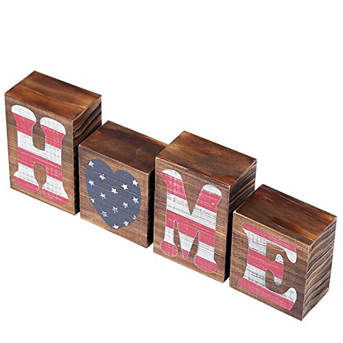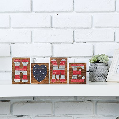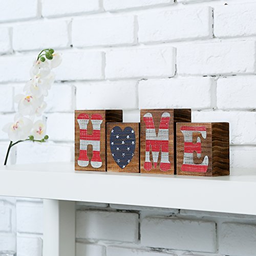 -. Binding : Kitchen -. Brand : MyGift -. Color : Red, White & Blue -. Feature : A patriotic set of letter blocks spelling the word HOME. / Each letter has its own block including an American flag design. / Perfect as a dash of American style to any mantel, coffee table, or office desk. / **Official MyGift® product.** / Approximate Dimensions (in inches): Overall - 12.25 W X 4.5 H X 2 D. Each Letter: H - 3.15 W X 4.5 H X 1.95 D; Heart - 3.15 W X 3.6 H X 1.95 D; M - 3.15 W X 4.5 H X 1.95 D; E - 3.15 W X 3.6 H X 1.95 H. -. Label : MyGift -. Manufacturer : MyGift -. MPN : TB-DECO0938MIX -. NumberOfItems : 1 -. PackageQuantity : 1 -. PartNumber : TB-DECO0938MIX -. ProductGroup : Home -. ProductTypeName : HOME -. Publisher : MyGift -. Size : Medium -. Studio : MyGift -. Title : Patriotic Red White & Blue Wooden HOME Letter Blocks, Tabletop American Flag Design Decor