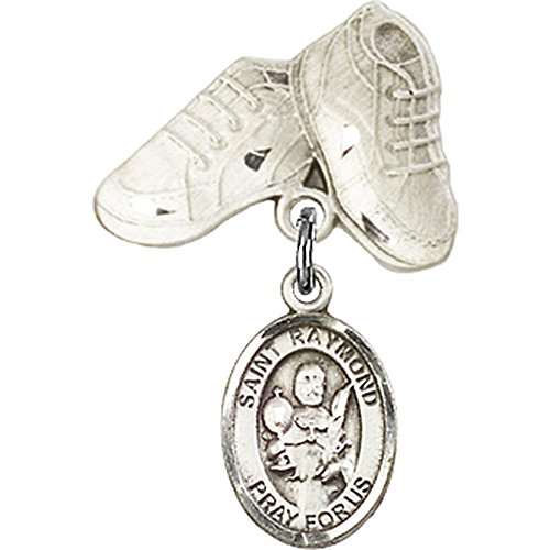 -. Title : Sterling Silver Baby Badge with St. Raymond Nonnatus Charm and Baby Boots Pin 1 X 5/8 inches
