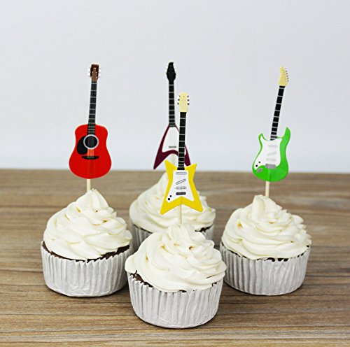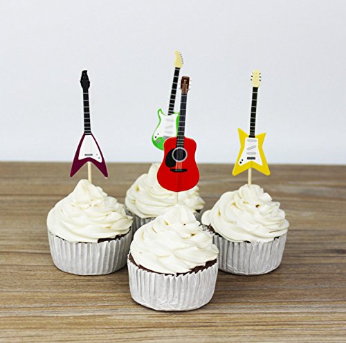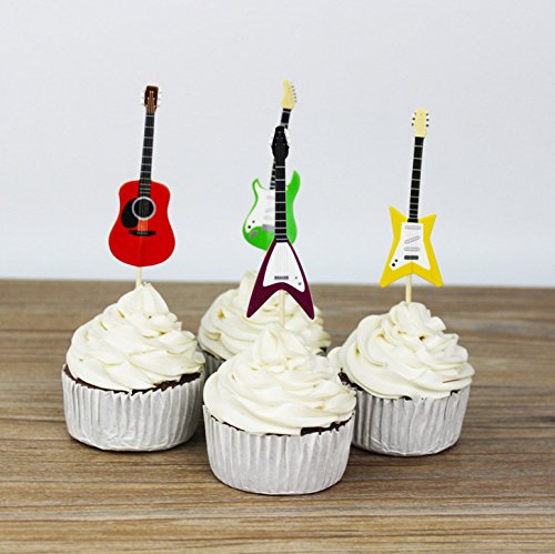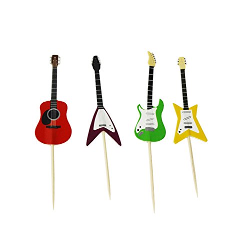 Maydolbone 24pcs Guitar Cupcake Toppers- birthday or baby shower Food Picks Decor And Cupcake Party Pick