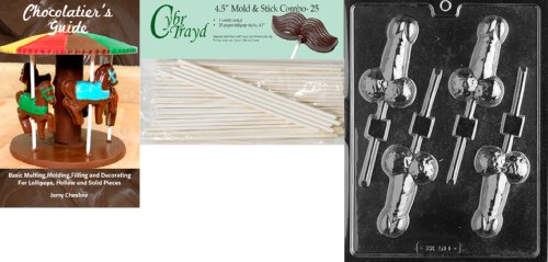Cybrtrayd 'Medium Pecker Pop' Adult Chocolate Candy Mold with 25 4.5-Inch Lollipop Sticks and Chocolatier's Guide
