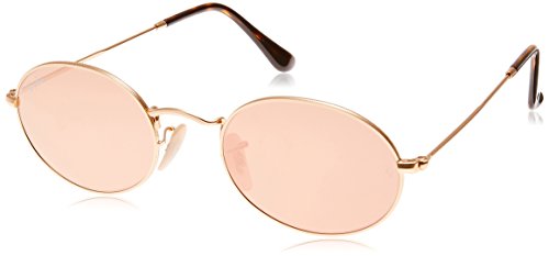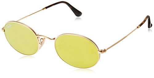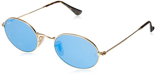 These oval sunglasses combine a newly introduced retro shape: flat lenses on oval. The rb3547n flat shades come in both classic colors as well as bold flash lenses, all paired with golden frames.