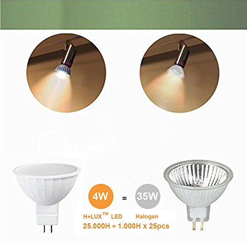 - 5.Easy Installation - compact-size MR16 led bulb fits straight into most existing fittings. Standard MR16 shape with GU5.3 bi-pin base. H+LUX MR16 4w led bulb can be easily fitted instead of ordinary MR16 halogen bulb.