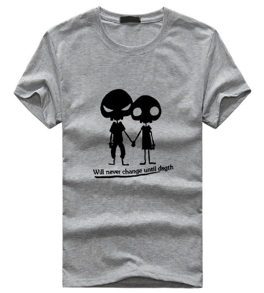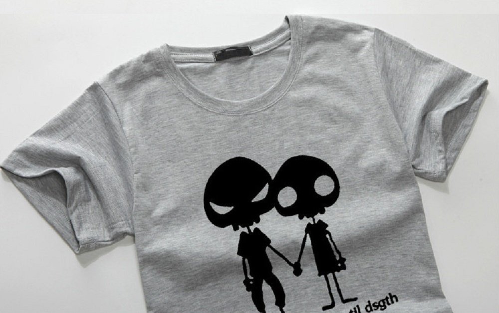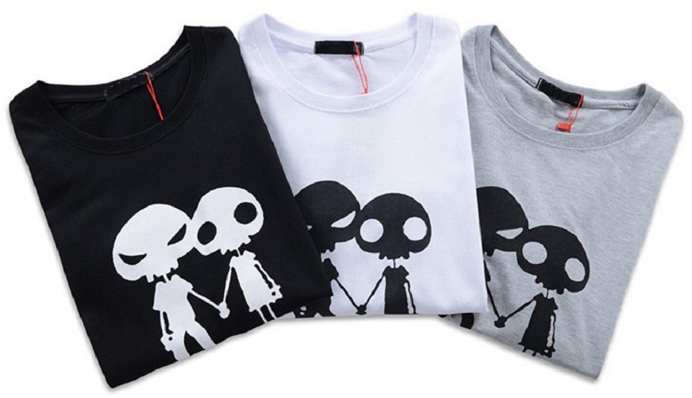 This is a cute short-sleeved T-shirt printed with men's women's combined skull.