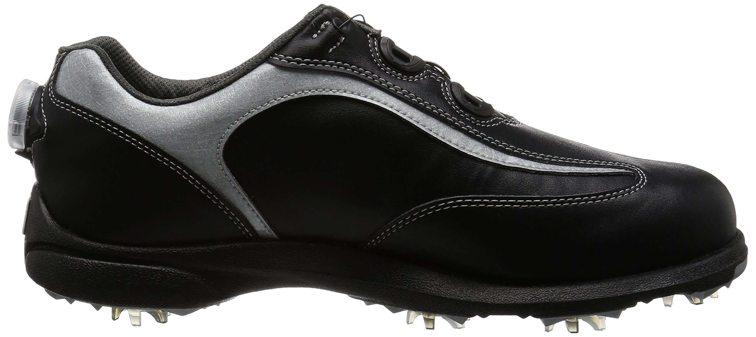 Golf shoes of sports shoes type which thoroughly pursued light weight and cushioning property.