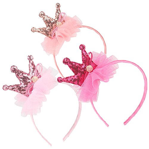 Elesa Miracle Kids Girl Sequins Tiara Crown Hair Hoop Hair Band Headband Value Set Toddler Crown Hair Hoops Party Favor