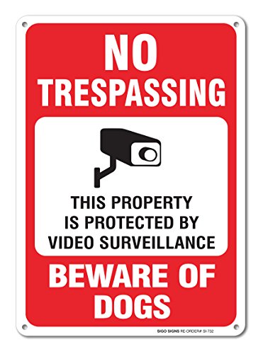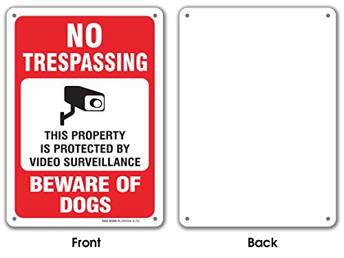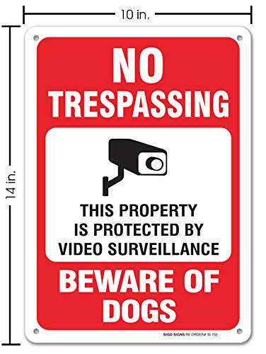 No Trespassing This Property is Protected by Video Surveillance Beware of Dogs Sign, Large 10 X 14" Aluminum, For Indoor or Outdoor Use - By SIGO SIGNS