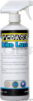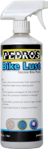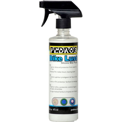 Pedro's Bike Lust Silicone polish can be used on bike frames and parts to protect against UV rays, add shine, and buff out scratches. - Repeated usage builds a protective surface that makes future cleaning easier