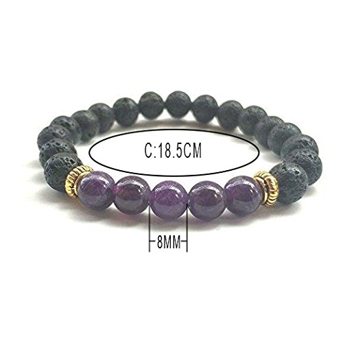 - Color:Blak+Purple+Gold; Bead Diameter:8MM, Weight:18g,Elasticity lava beads strand bracelet,one size fits all