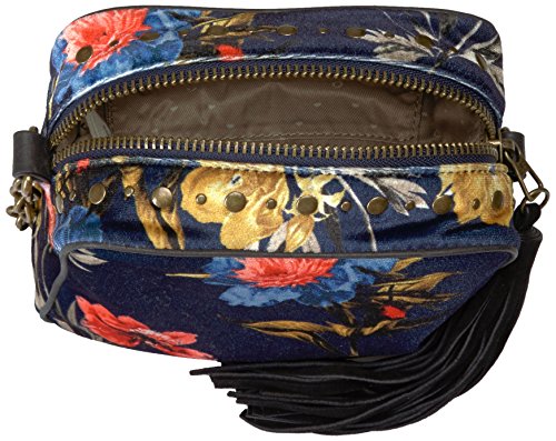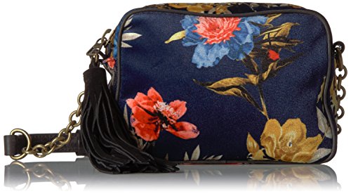 -. Feature : • floral velvet• polyester lining • 7 w x 5 h x 3 d • 21" strap• adjustable strap• zip closure• round stud detail• tassel• main compartment with slip pocket• exterior: slip pocket