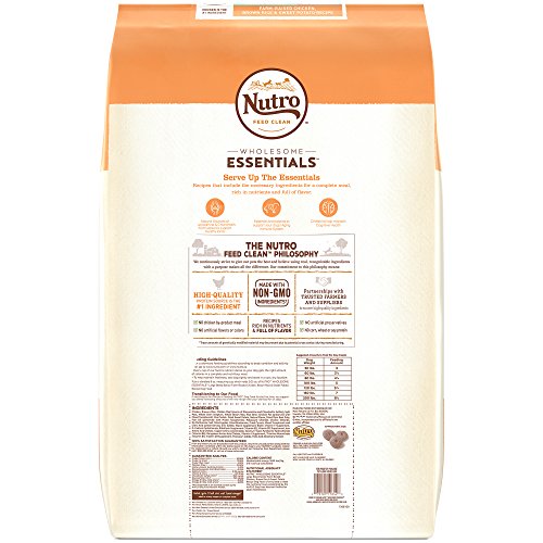 NUTRO WHOLESOME ESSENTIALS Large Breed Puppy Farm-Raised Chicken, Brown Rice & Sweet Potato Recipe Dog Food always starts with great tasting, farm-raised chicken and is made with high-quality nutrients like glucosamine and chondroitin. This dog food is formulated to support healthy joints and help maintain cognitive health for your senior dog. Essential antioxidants also support your dog's aging immune system. NUTRO Food for Dogs always follows the THE NUTRO FEED CLEAN philosophy, is always made with Non-GMO* Ingredients and contains no artificial flavors, colors or preservatives. *Trace amounts of genetically modified material may be present due to potential cross contact during manufacturing.