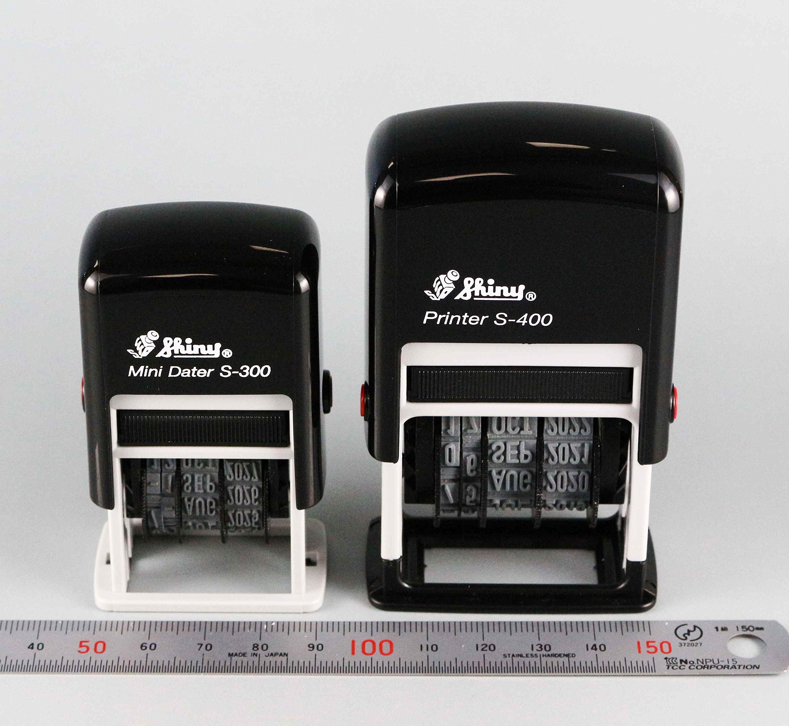 Rotary type date stamps unnecessary for stamp pads, and clear continuous stamping are possible.