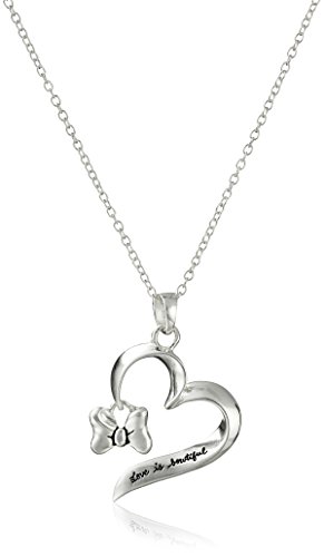 Disney Sterling Silver "Love Is Beautiful" with Minnie's Bow Pendant Necklace, 18"