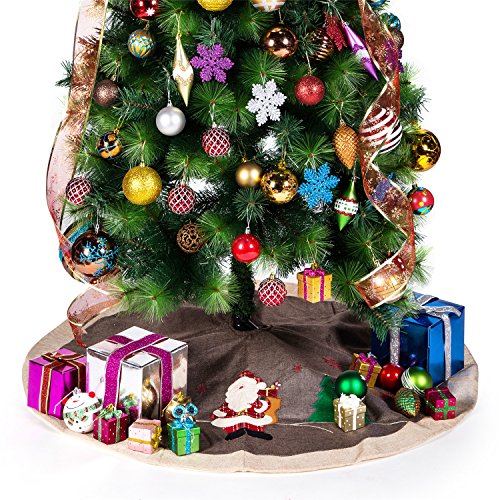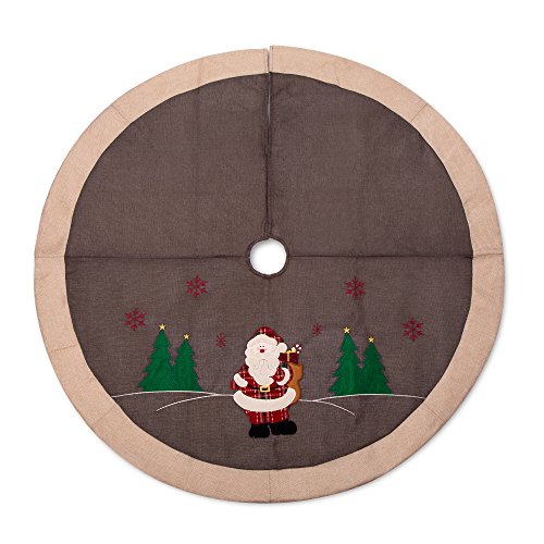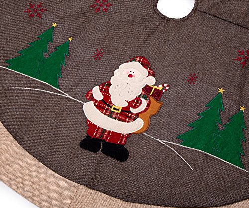 SANNO 42" Fantastic Christmas Tree Skirt with Woodland Collection, Santa and Red Embroidered Snowflakes Characters,Grey with Begie Edge