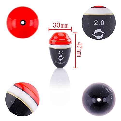 -. Feature : Material:Paulownia and UV Paint / Hole diameter:2.8mm / Great for small Size hook baits, maggots, crickets, salmon eggs, up to spawn sacks, and small minnows / This bobbers has good buoyancy and it can float on the top of the water / Package Content: 5 x Fishing Bobber
