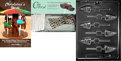 Cybrtrayd "Candy Corn Lolly" Chocolate Mold with Chocolatier's Bundle, Includes 25 Lollipop Sticks, 25 Cello Bags and 25 Happy Halloween Twist Ties