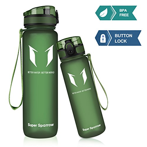 DURABLE AND EASY TO USE - This is where our premium design shines! Super Sparrow 32 ounce, 1000 ml bottles are tough, durable and resistant to impact. The special spill-proof top swings open with a one-handed push of a button! An air hole placed on the lid ensures fast flow of water with effortless drinking. And when you're done with our workout, lock the bottle to make it 100% leak-proof and dirt-proof.