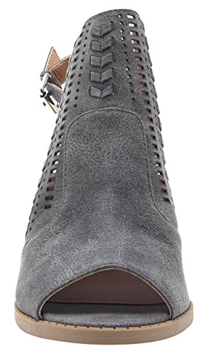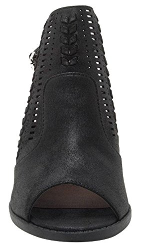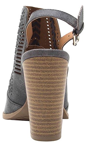 Product Description This ankle boot from Cambridge Select features a peep toe, woven braid and perforation detailing, slingback strap, and chunky, stacked heel. Imported. 0