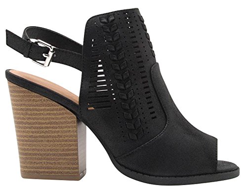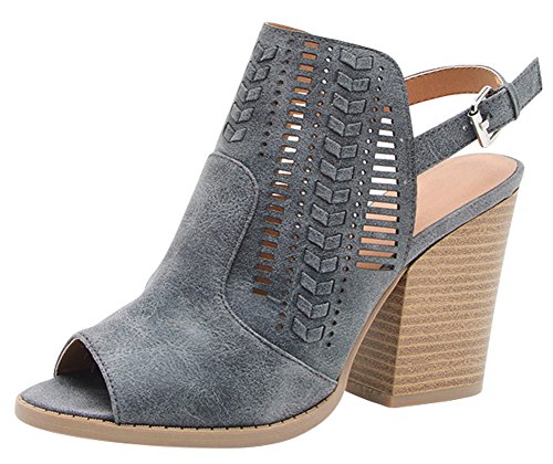 Cambridge Select Women's Peep Toe Perforated Braided Chunky Stacked Block Heel Slingback Ankle ...