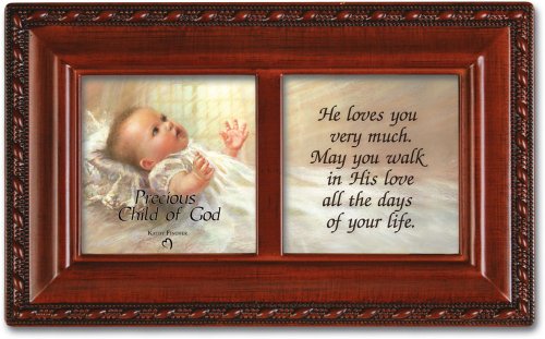 Precious Child Baptism Cottage Garden Inspirational Woodgrain Petite Music Box Plays Jesus Loves Me