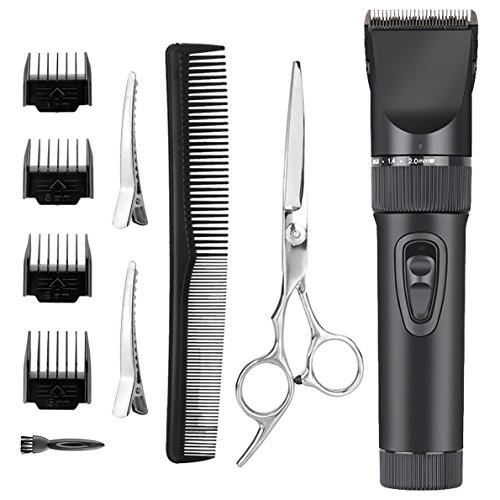 - 8 attachments kit for all your grooming needs: scissors, barber comb, 2 styling clips, 3-6-9-12mm guide combs, cleaning brush. You can easily adjust the combs to the proper height. With leveled combs, you can easily trim hair perfectly even.