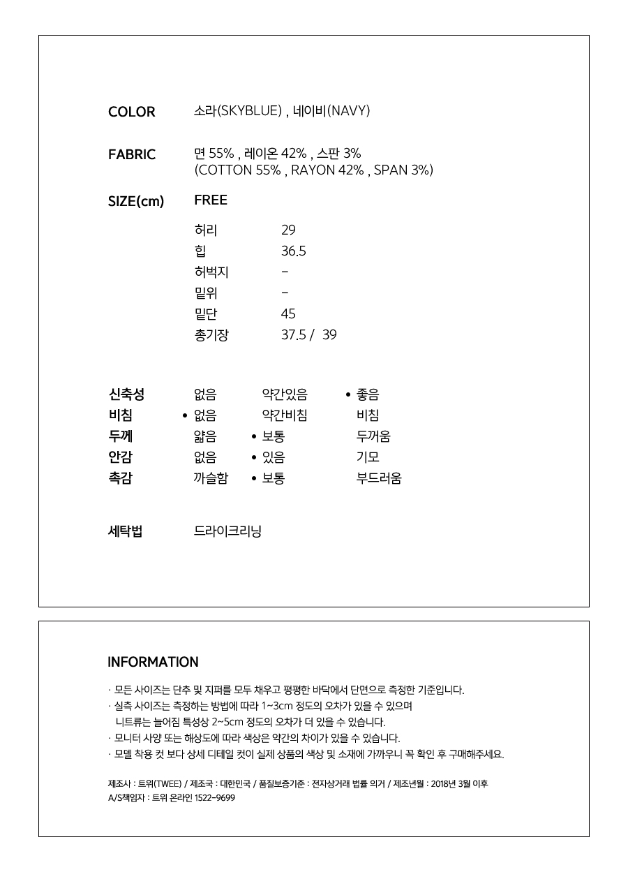 짧은기장에도 안감이 있어 부담없이 착용가능해요^^