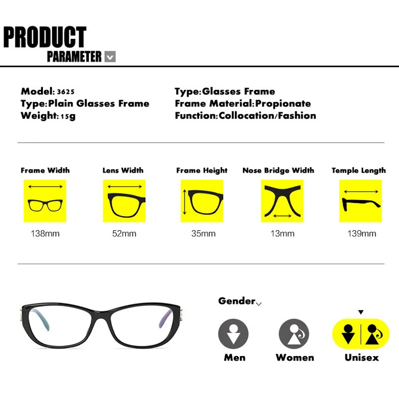 Gender: Women Men Optical Eyeglasses Frame
