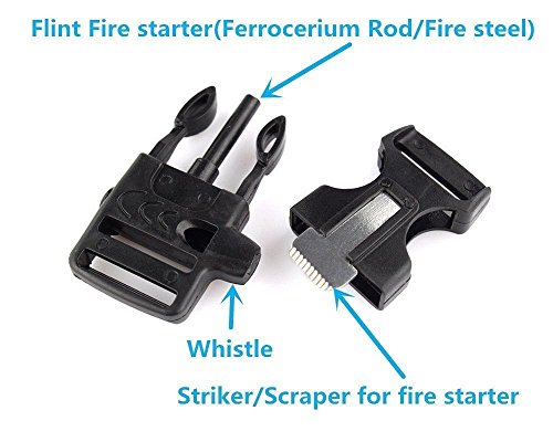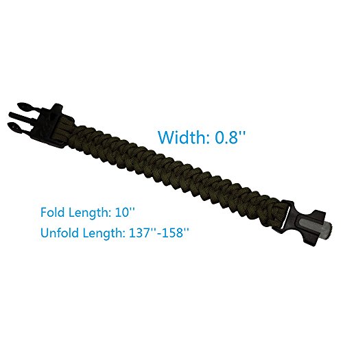 -. Binding : Misc. -. Brand : Amazing She -. Color : Black+green army -. EAN : 1090203048199 -. Feature : Survival paracord designed in bracelet style, easier to wear and store / With fire-scraper to start fire in the outside / With compass to be your good guide / With whistle to find your partner when you missed and no signal of smart phone / Multifuntion in one bracelet, makes your package much lighter during outdoors activities -. IsAutographed : 0 -. IsMemorabilia : 0 -. Label : Amazing She -. Manufacturer : Amazing She -. MPN : B001 -. PackageQuantity : 1 -. PartNumber : B001 -. ProductGroup : Sports -. ProductTypeName : SPORTING_GOODS -. Publisher : Amazing She -. Studio : Amazing She -. Title : (Pack of two) Outdoor Camping Removable Surival Paracord Bracelet with Adjustable Size Fire Starter Whistle and Compass-Multi Functional Nylon Braided (Black+green army)