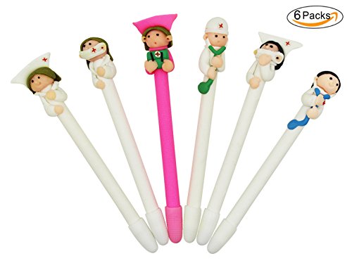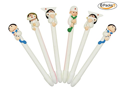 -. Title : CC-US Pack of 6, 0.5mm Doctor and Nurse Polymer Clay Ballpoint Pens Cute Novelty Cartoon Writing Stationery for School Office Supplies Gifts Set