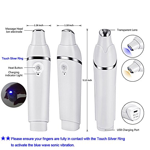 - Safe and easy to use, portable and light weight, rechargable with USB cable, convenient for indoor and travel. ★★Notice: need to touch the "touch silver ring" to activate the blue wave sonic vibration.