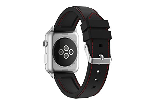 -. Title : Cheree Apple Watch Band 38mm Silicone Strap Red Stitching Bracelet Replacement for Apple iWatch Series 1 Series 2
