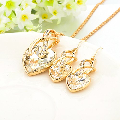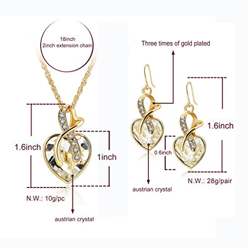 - Feature : Packaged by Beautiful Purple Gift Box / Material: Gold Plated Eco-friendly Zinc Alloy,High Quality Austrian Crystal and Rhinestone / Size:18.0 inch (necklace),big Crystal Heart size:1.0inch,Earring size:1.6 inch / Best Gift For Birthday, Anniversary, Holidays, Stocking Stuffers, Graduation, Christmas, Valentine's Day, Mother's Day and Any Other Occasions / You can exchange or refund in one month if the bracelet has some problem.But you need to offer the photo of the bracelet which has some quality problem.