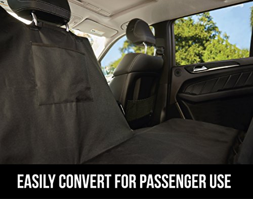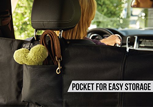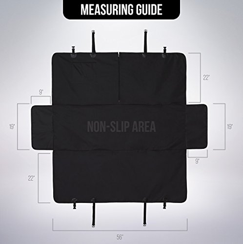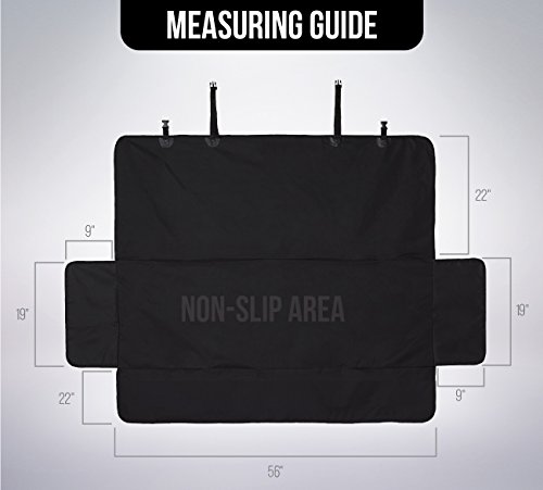 -. Feature : NON- SLIP: The Most Effective No Slip Car Seat Protector on the Market! The textured underside grip dots on rear seat, four headrest adjustable straps, two seat anchors, and two elastic straps reduces the amount of movement. / PROTECTION: 100% Waterproof double layer design, seatbelt velcro closure, and side flaps provides maximum rear protection from dirt, spills, scratches, hair, and fur. **Not intended to be used as a safety device. Please use pet restraining devices for this purpose.** / POCKET & ZIPPER: Convenient pocket for storage of personal items such as toys, leashes, grooming supplies, or water bottle. Reinforced Zipper allows easy access to your pet and use of half of the car for regular use. / EASY TO INSTALL & CLEAN: The Gorilla Grip hammock style car seat protector measures 56" wide and 63" length. Fits most cars and SUVs (Does not work without adjustable headrests) and very easy to install with quick release clips. Easy to spot clean with a damp cloth or vacuum. Machine washable. / GUARANTEE: Buy today with confidence and join the millions of satisfied customers around the globe with our 10 Year NO QUESTIONS ASKED GUARANTEE.