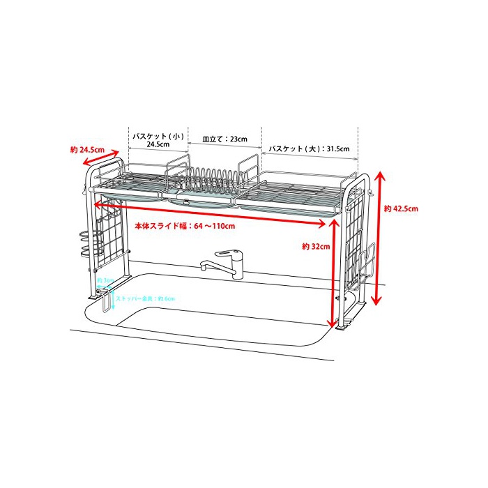 사이즈:(약):폭64~110×(길이)깊이24.6×높이42.5cm